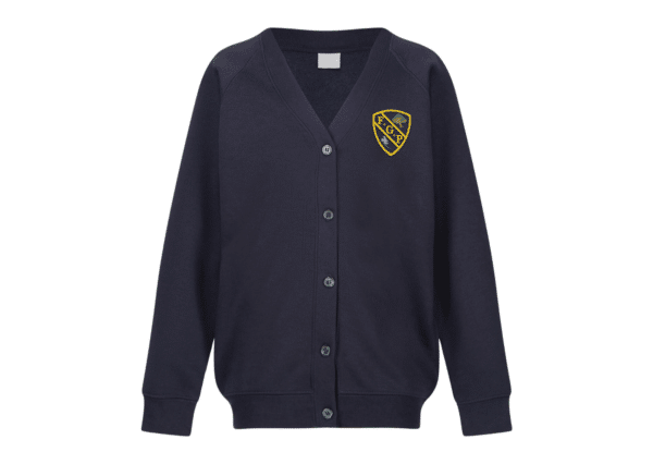 Sweatshirt fabric cardigan with school logo embroidery.