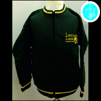 Bespoke school design with bottle/gold ribbed trim to neck, waistband & cuffs.